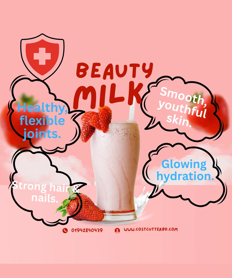 Beauty Milk 50,000mg āĻāĻ•āϟāĻŋ Premium Japanese Strawberry Collagen + Gluta Drink, āϝāĻž Glutathione, Swiss Collagen, Q10, Rosehip, Acai Berry, L-Carnitine āĻāĻŦāĻ‚ āφāϰāĻ“ ⧍ā§Ļ+ supportive beauty ingredients āĻĻāĻŋā§Ÿā§‡ āϤ⧈āϰāĻŋāĨ¤